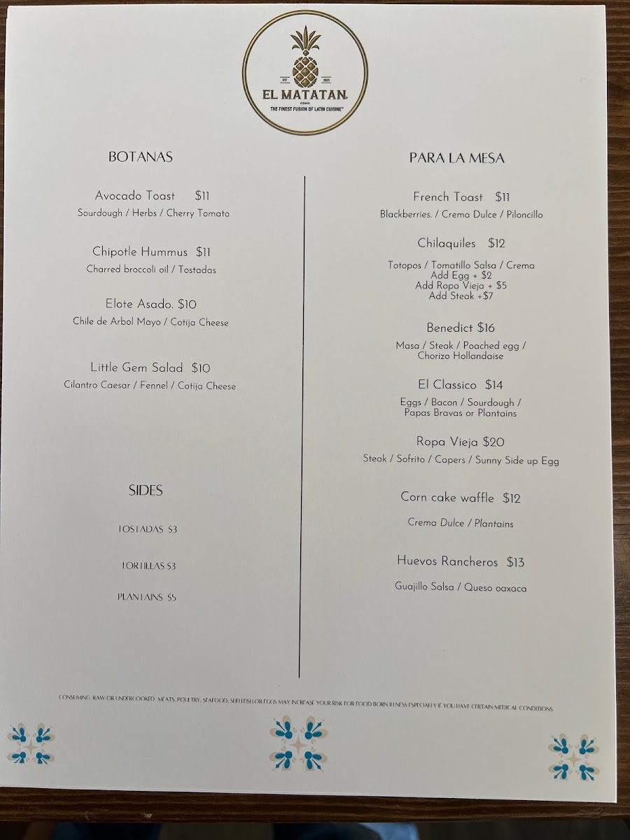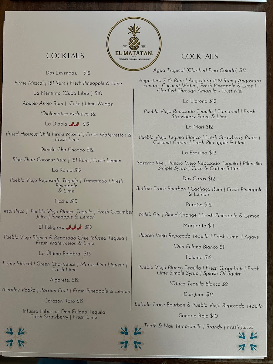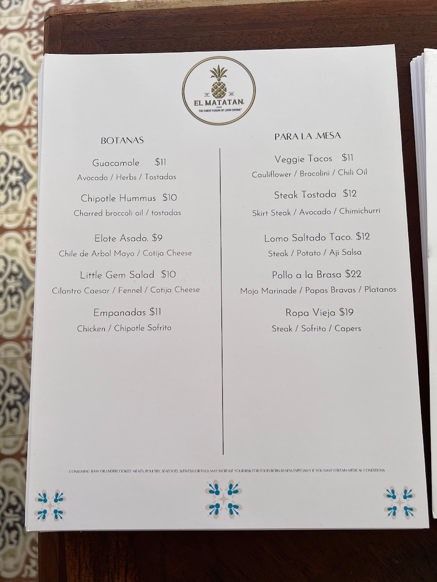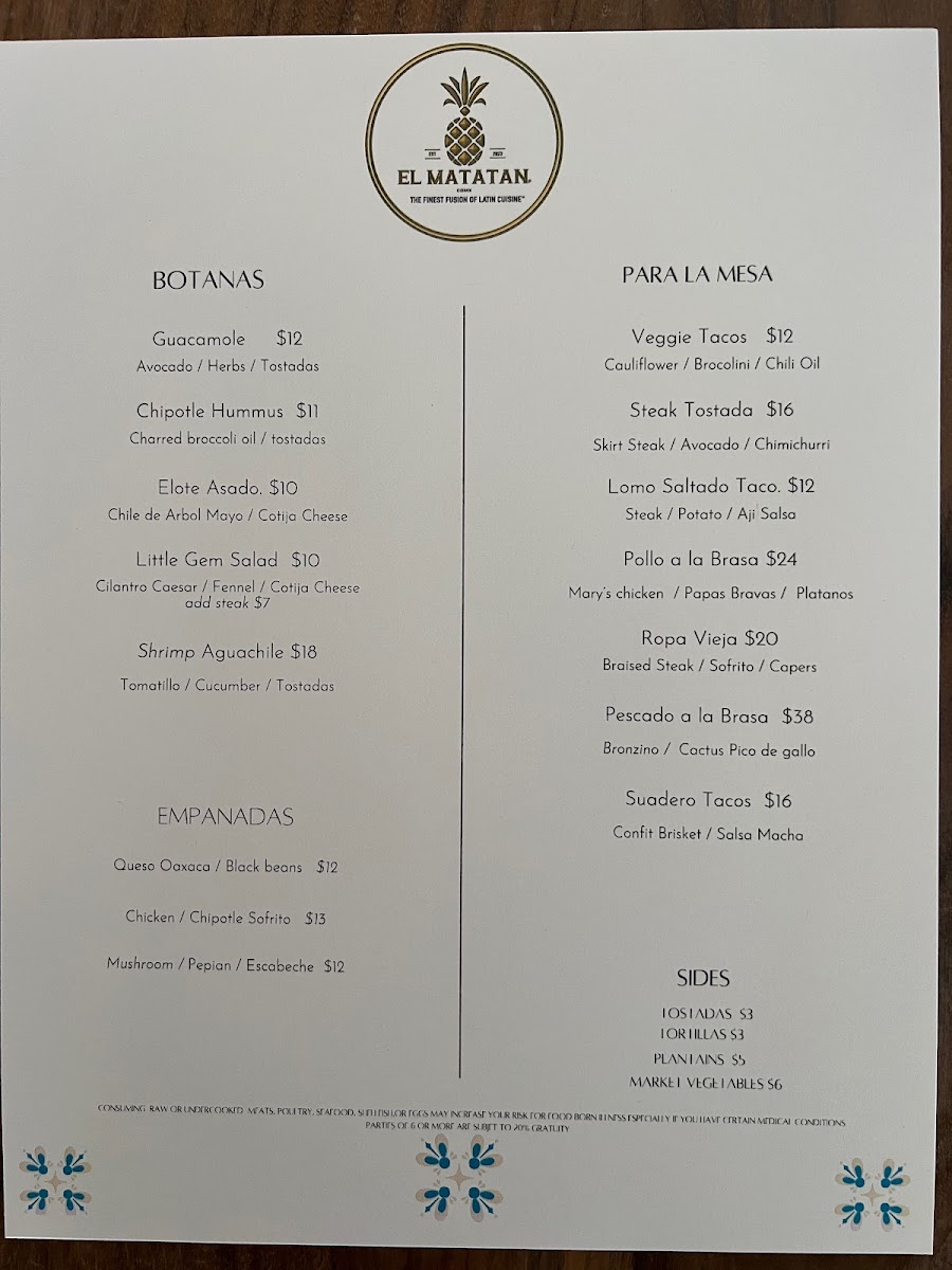 El Matatan The Finest Fusion Of Latin Cuisine Menu (Update 2025)